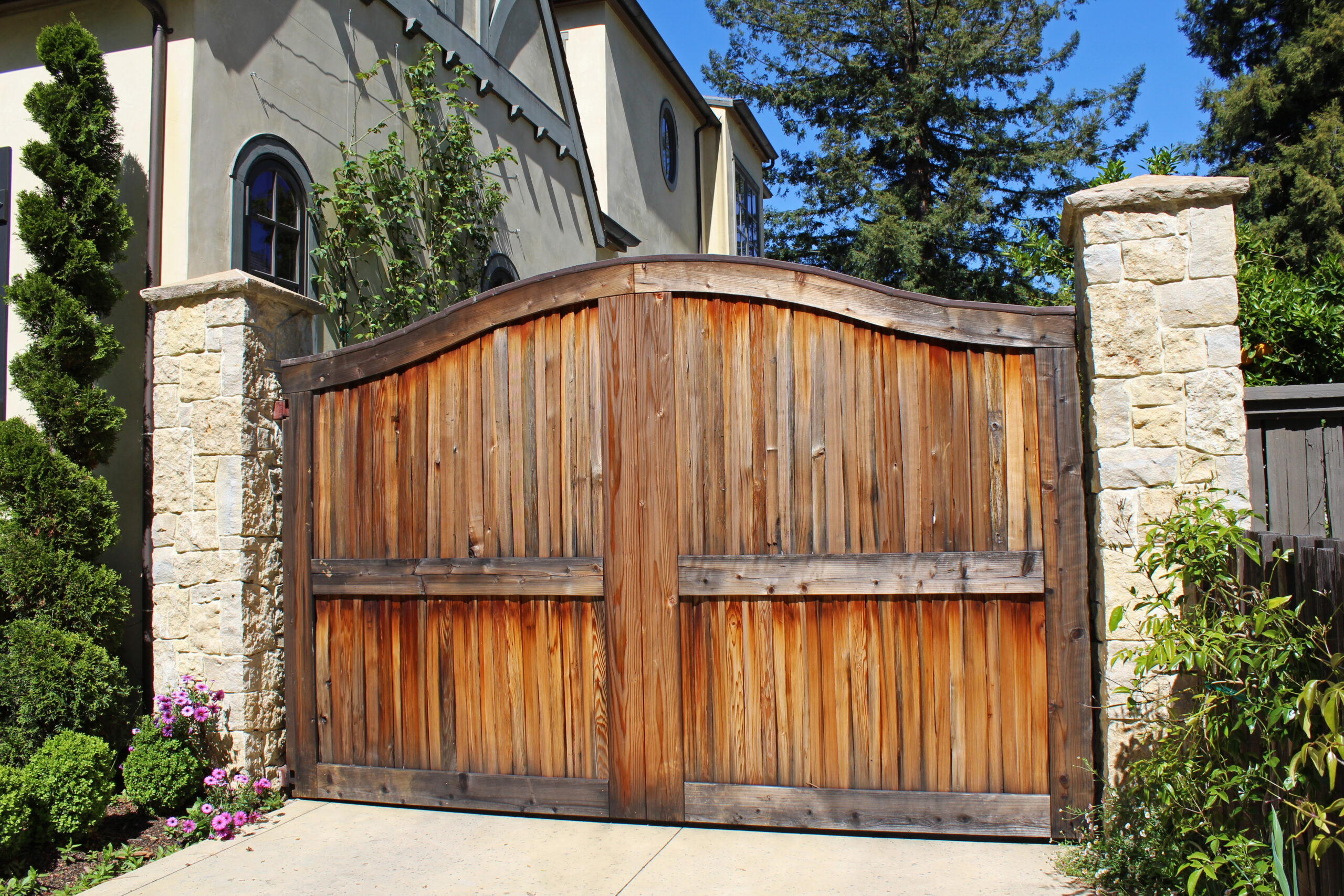 Custom gates, lighting, and planting arrangements to complete the perfect entry.
